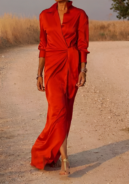 KL | Maxi vestido de manga larga con solapas y corte entallado